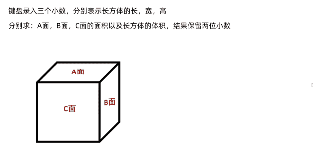 printf("该长方形的体积:%.2lf\n", (a * b * c));