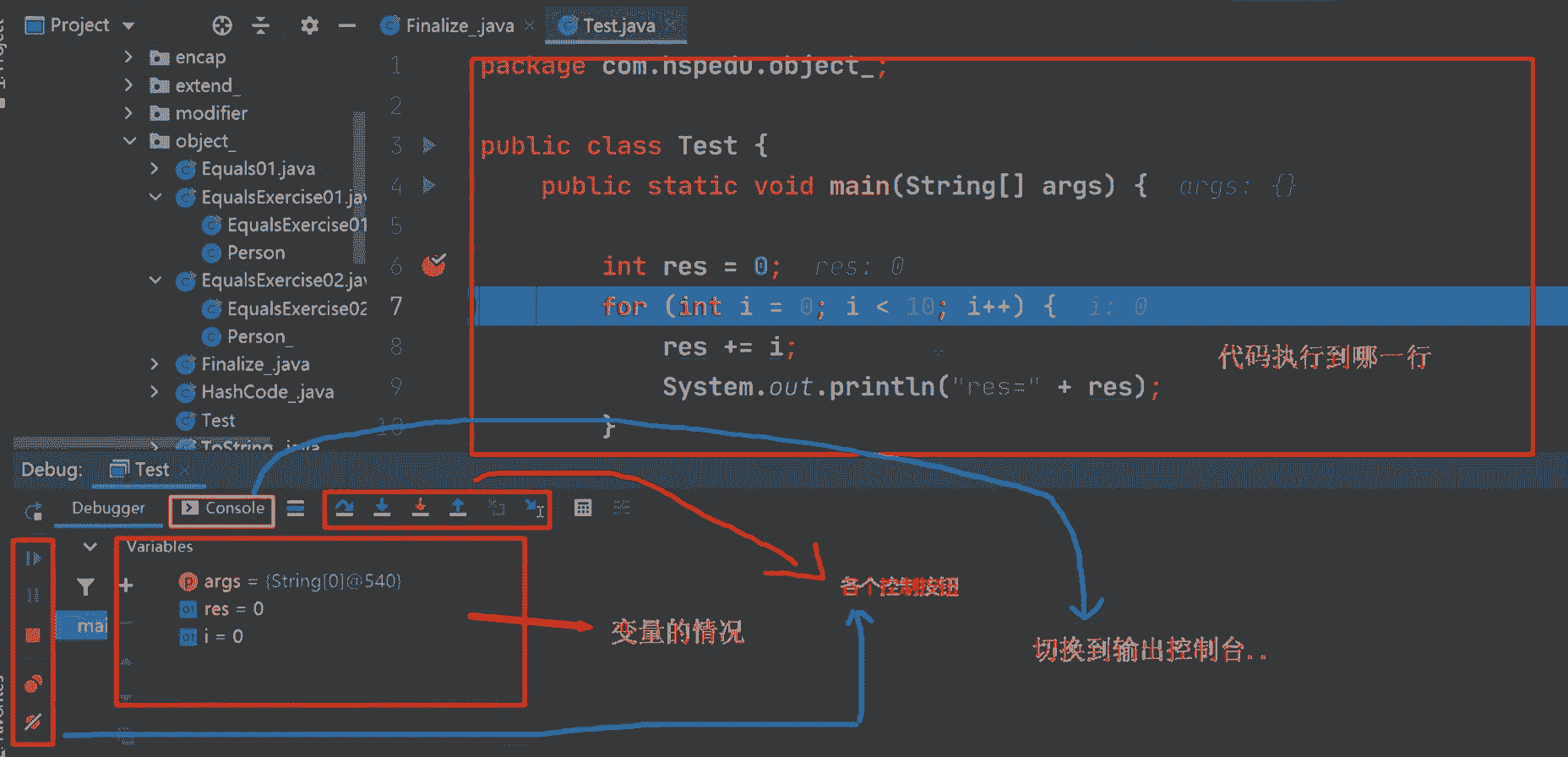 - 断点调试是指在程序中的某行代码中设置一个断点,然后在调试的时候,程序运行到该断点时就会停止,可以自己一步一步的调试代码,调试过程中可以看到各个变量当前的值,如果在调试过程中发现错误的代码,则程序会立即显示当前代码的错误,然后停下来,我们则可以通过程序提供的错误信息对代码的Bug进行分析