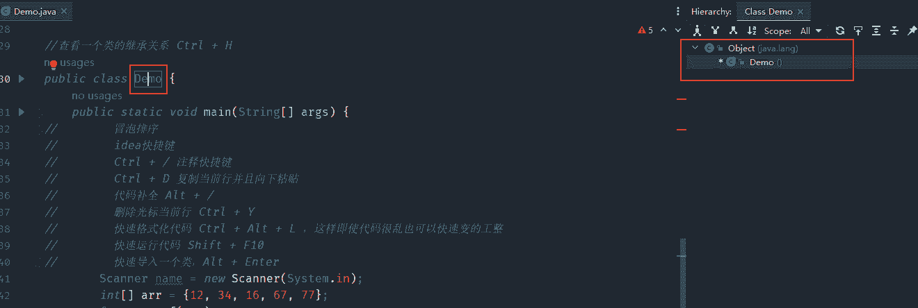 - 查看一个类的继承关系 Ctrl + H