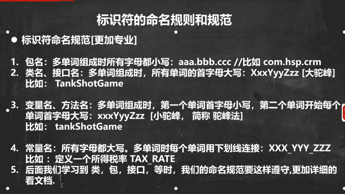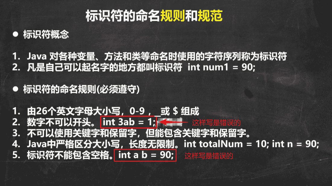 int a = 10; //其中a就是一个标识符标识符命名规范