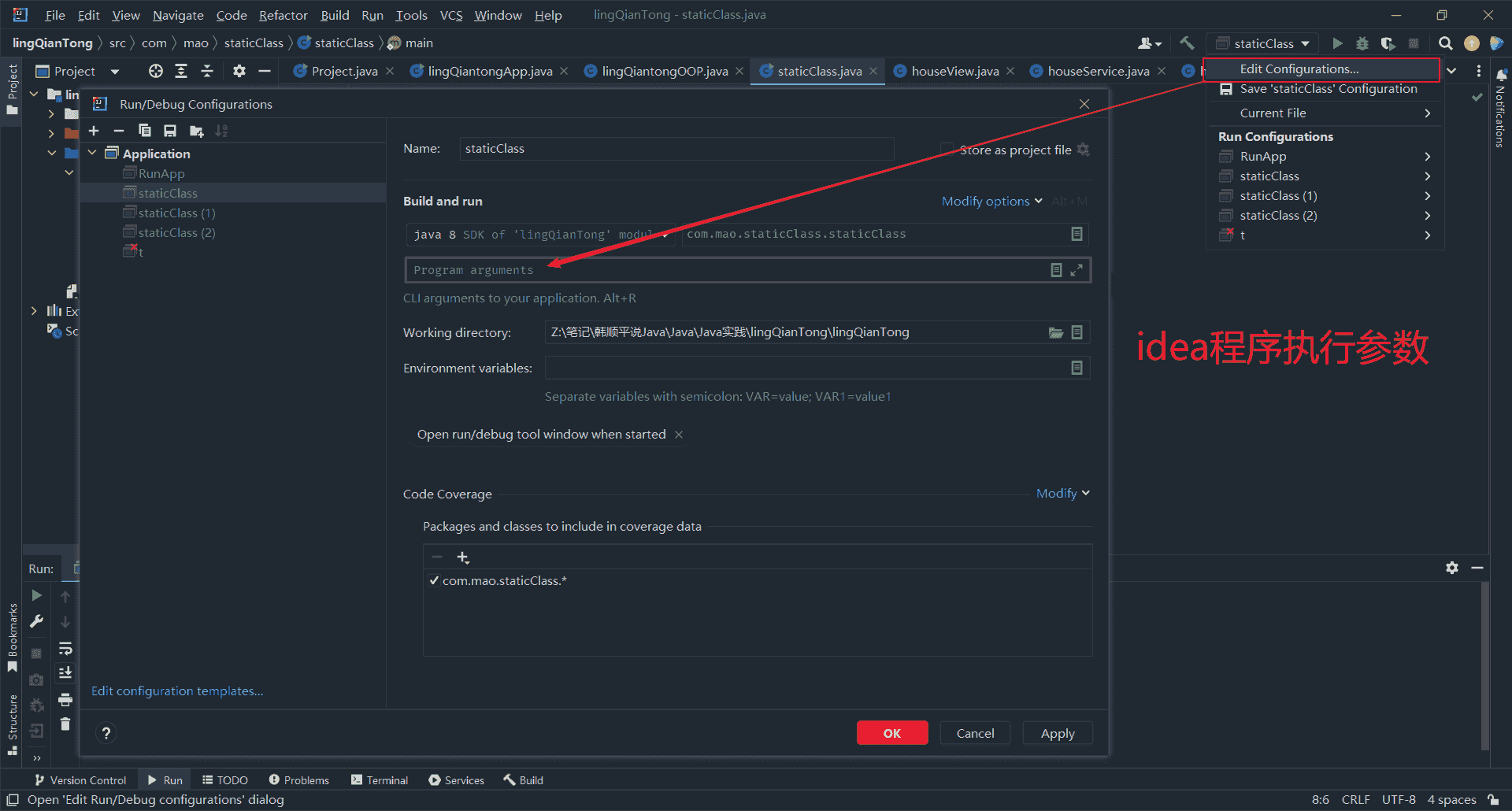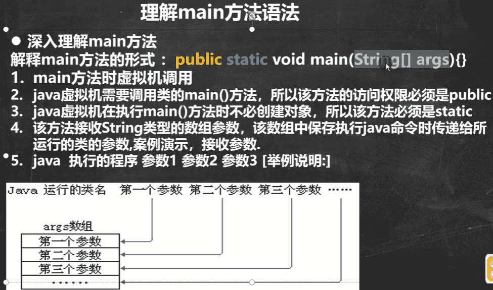 String[] args是一个String类型的一维数组,在执行运行命令时,运行命令后面输入的内容将传到args变量中,多个参数需要用空格隔开命令行添加: