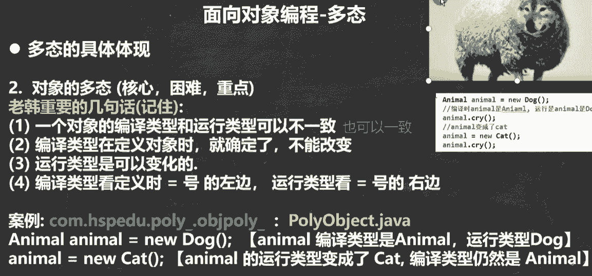 编译类型(父类)在等号的左边,运行类型(子类)在等号的右边