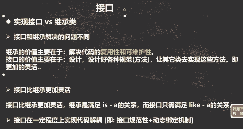 因为Java是单继承机制,所以接口就相当于是继承的扩展(一个类只能继承一个父类,但是可以实现多个接口)