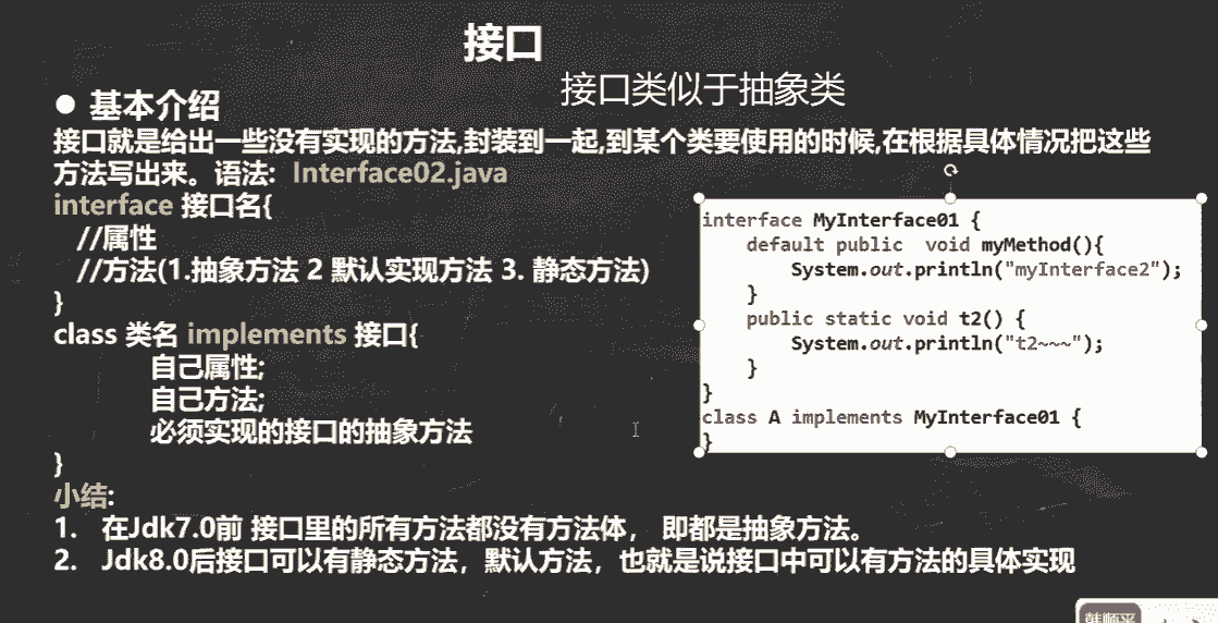 接口和抽象类一样,如果你要调用接口,那么你就要实现该接口的所有抽象方法