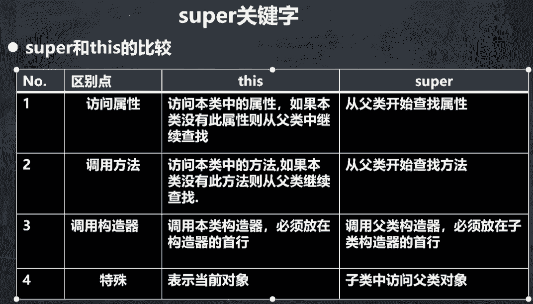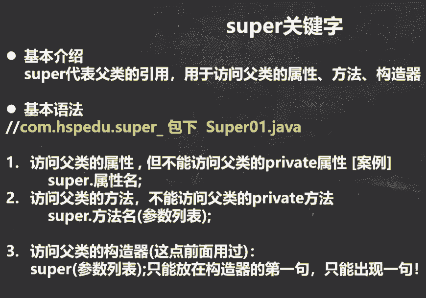 关键字的方法)之中,代表的是当前正在调用这个方法的对象super