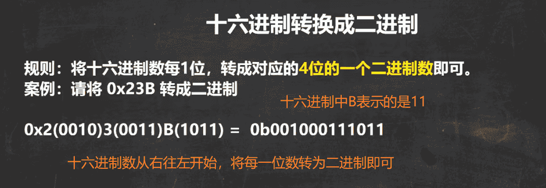 十六进制数转二进制数,将每一位数转换为二进制,而且转换的二进制数是四位的,在将转换好的二进制数组合起来就是转换好的二进制数