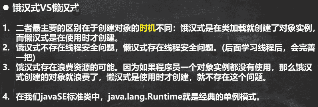 饿汉式的缺点是创建了对象,但是可能存在没有使用的情况,这样会导致资源的浪费