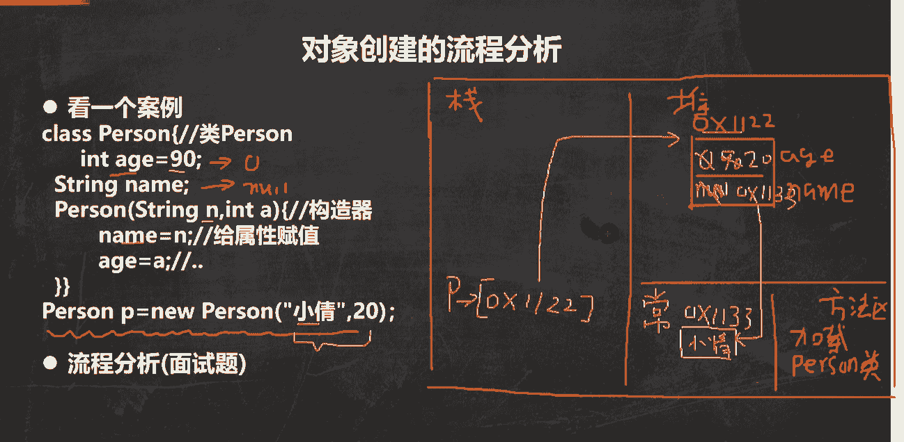 没有赋值,所以还是为null(为空) - 然后构造器初始化(构造器不是创建对象,而是初始化对象),所以