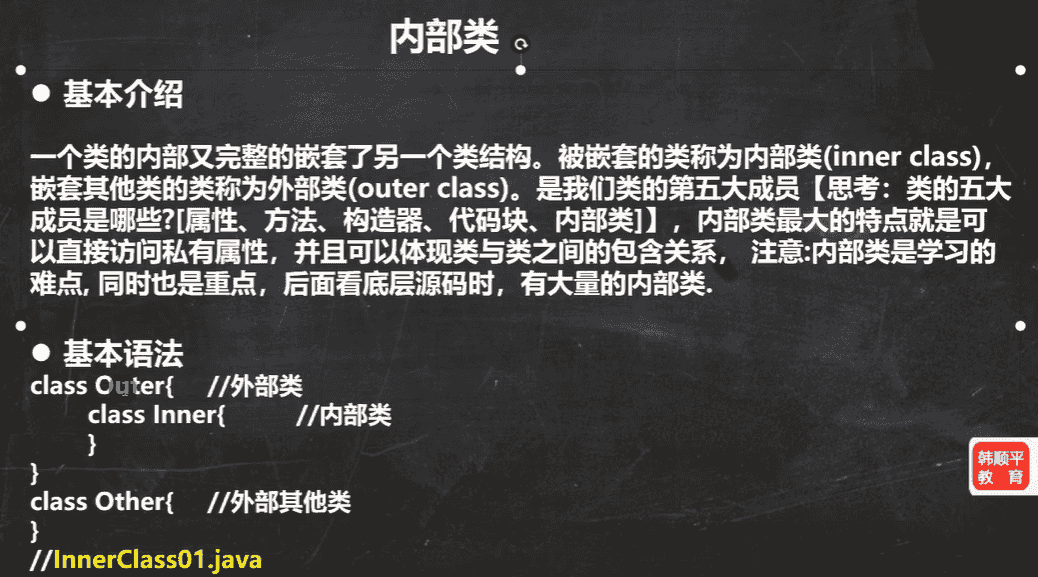// 所以需要创建A1类来引用内部类B1,所以 a1.new B1(); 就是用来创建内部类B1的