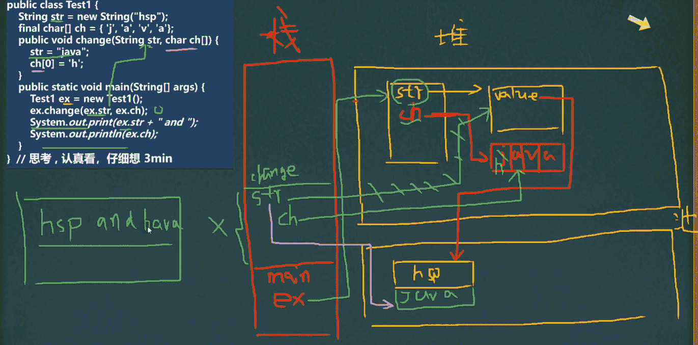String的值并不像普通类那样直接修改原本的值,当我们修改值的时候,首先查看常量池中有没有该常量,如果有,那么堆中的value对象则指向该常量(内存地址会变化);如果常量池中没有该常量,则在常量池中创建一个新常量,然后堆中的value对象则指向该常量(内存地址会变化)String是用字符数组private final char value[];来存放字符串内容的;字符串被分为多个字符,然后在被存放到该数组中注意