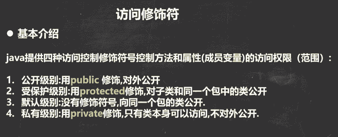 注意:只有默认修饰符和public修饰符才可以修饰类,其它的修饰符不可以修饰类,并且遵循上面的访问特点