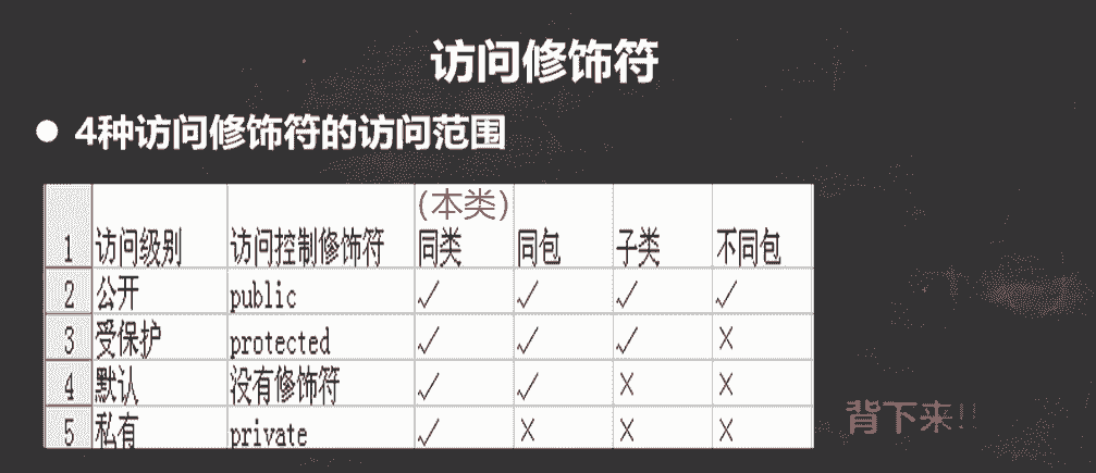 4种访问修饰符所访问的范围