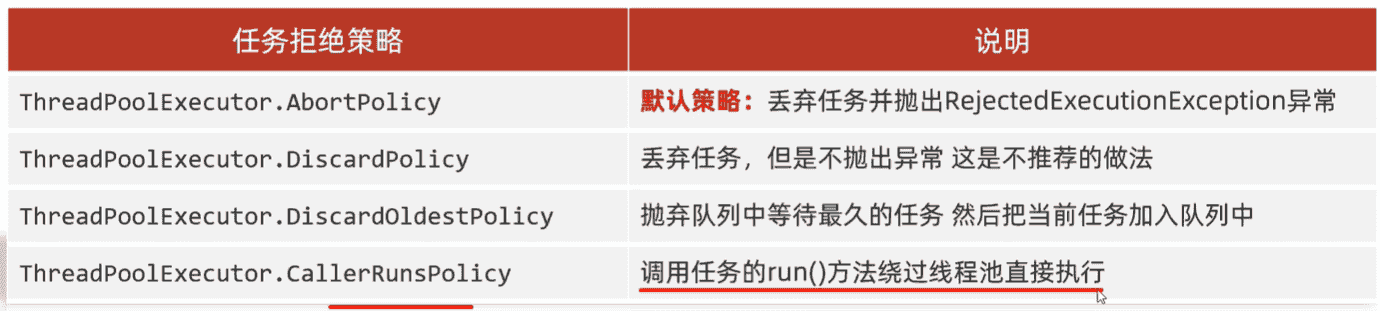 new ThreadPoolExecutor.AbortPolicy() // 任务拒绝策略